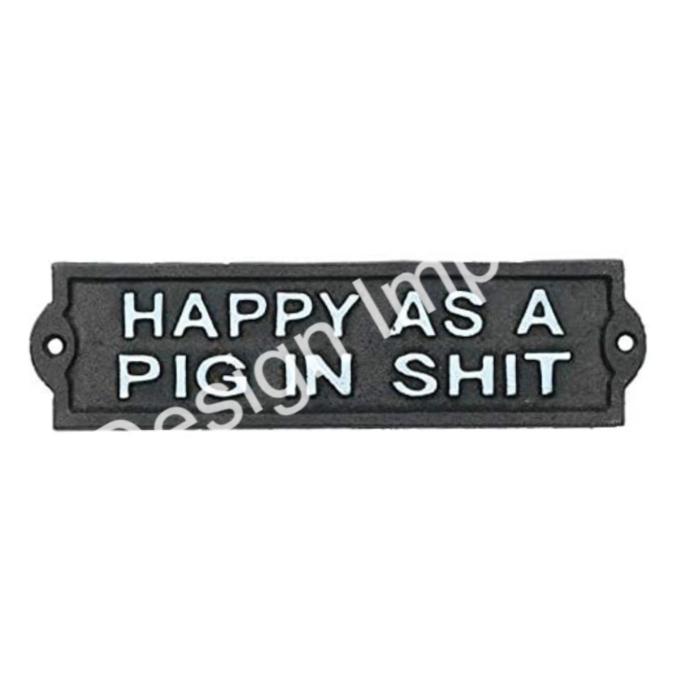 Cast Iron Wall Sign Easy Mount & Removable Happy As a Pig on Shit Sign Decorative Metal Signs in Competitive & Impressive Price