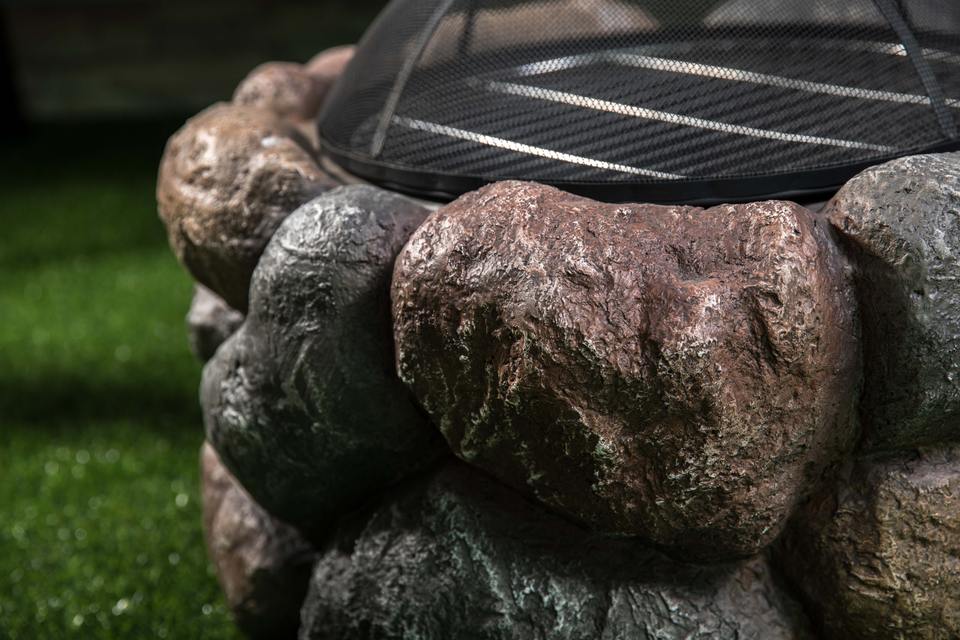 Cast Stone Outdoor Wood-Burning Fire Pit with Poker Accessory