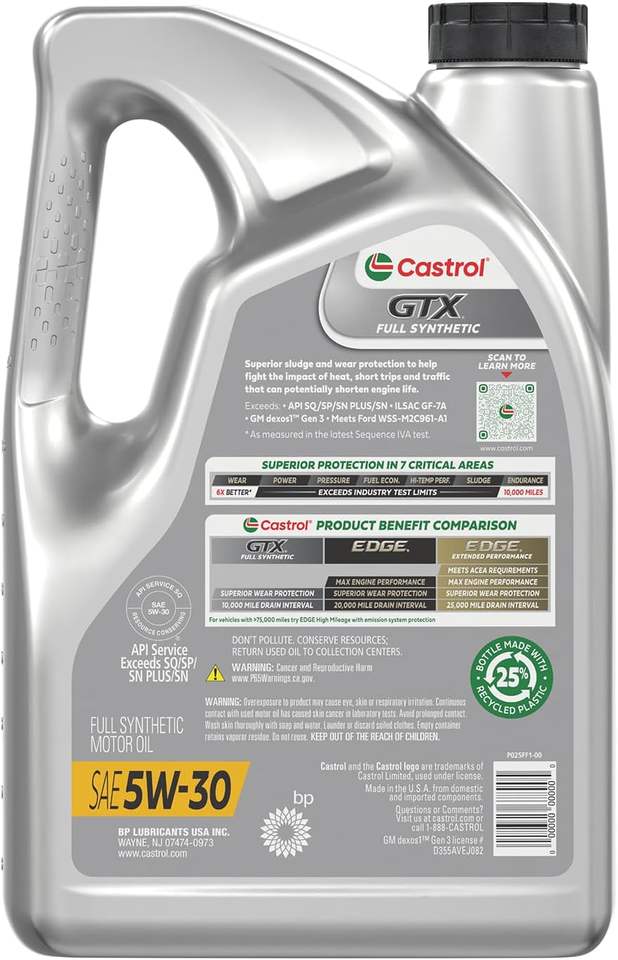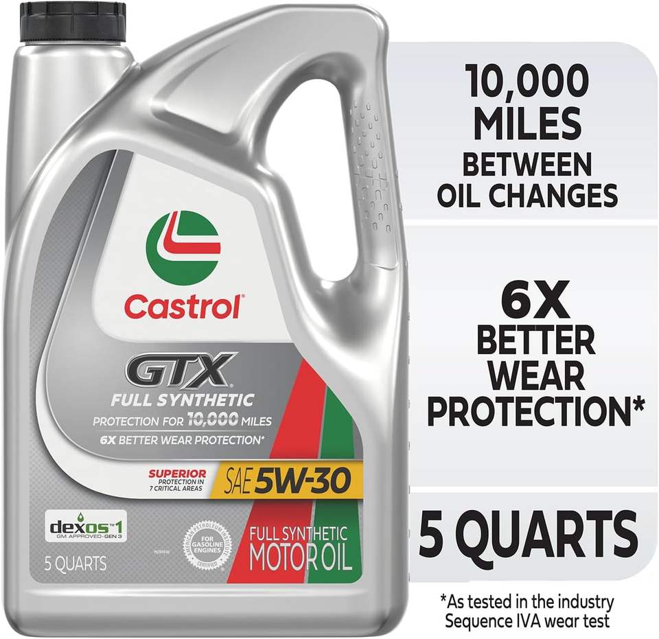 Castrol GTX Full Synthetic 5W-30 Motor Oil - 5 Quarts, Advanced Engine Protection, Enhanced Performance