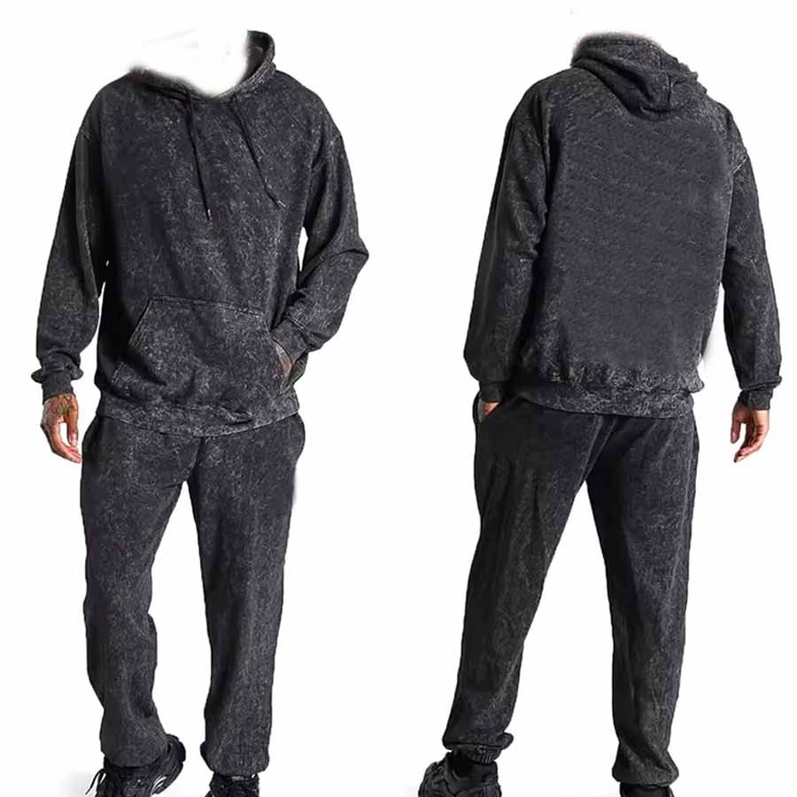Casual Winter Printed Acid Wash Breathable Hoodie Sweatpants 2-Piece Elastic Cargo Pants Drawstring Tracksuit Set