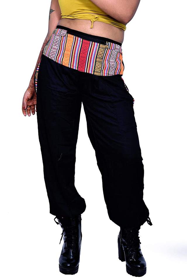 Casual Boho Yogini Trousers Plus Size Cotton Hobo Harem Pants 2 Side Pockets Summer Mid Drawstring Printed Money Belt Button