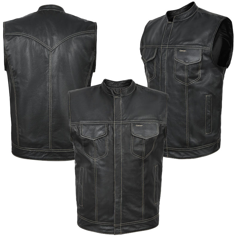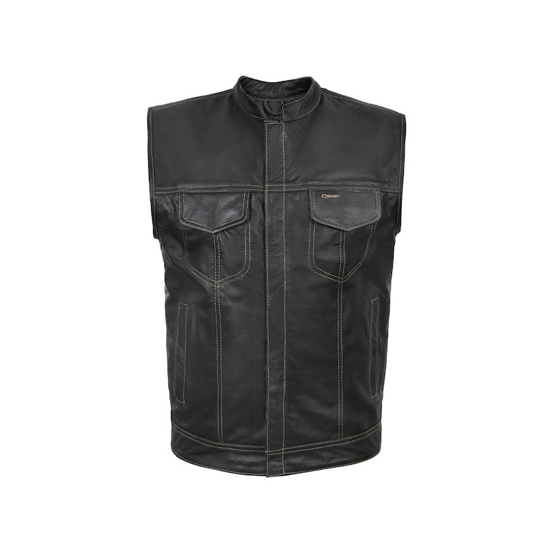 Casual Breathable Club Style Cowhide Genuine Leather Vest for Men Large Size Motorcycle Biker Leather Vest OEM Custom Design
