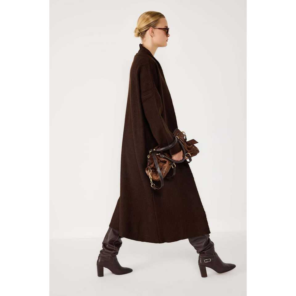 Casual Chic Brown Long Cardigan Crocheted and Jacquard Decorated with Buttons Winter Wool Spring Acrylic for Autumn Season
