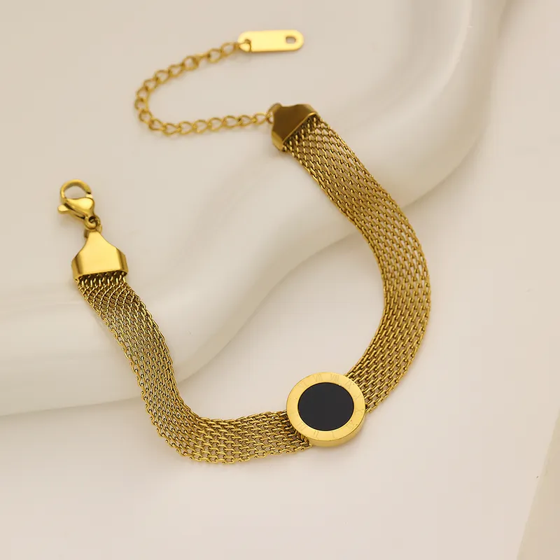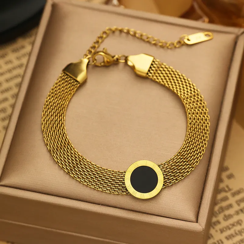 Casual Classic Style 304 Stainless Steel 18K Gold Plated Roman Numeral Charm Bracelets Fashionable in Bulk