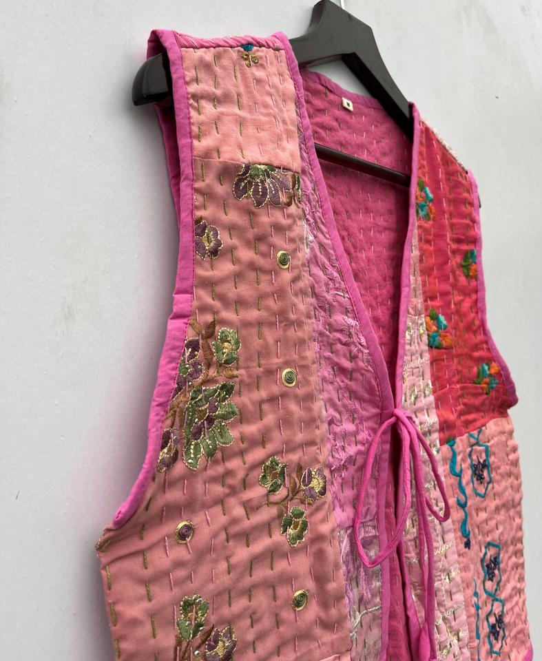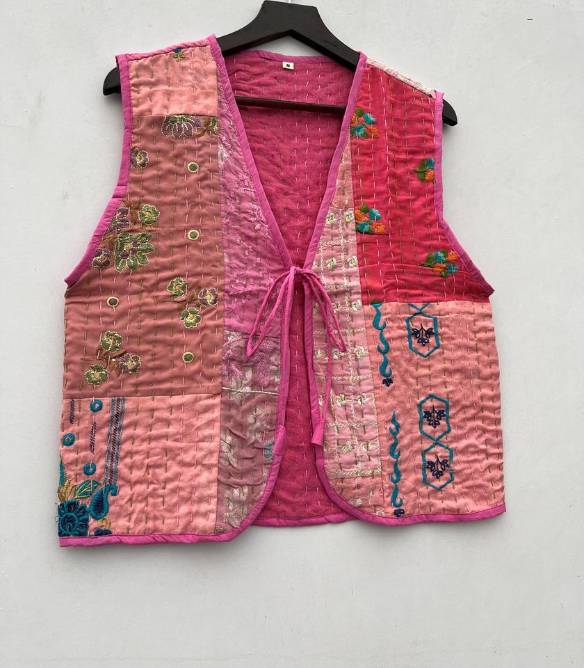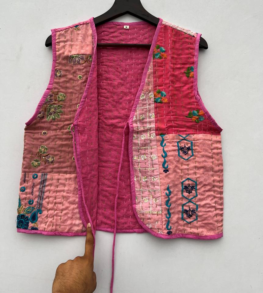 Casual Cotton V-Neck Sleeveless Women's Vest Embroidered Open Front Dori Design Short Waistcoat Length Autumn Knitted Patchwork