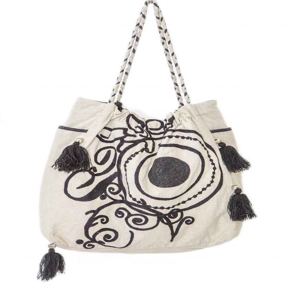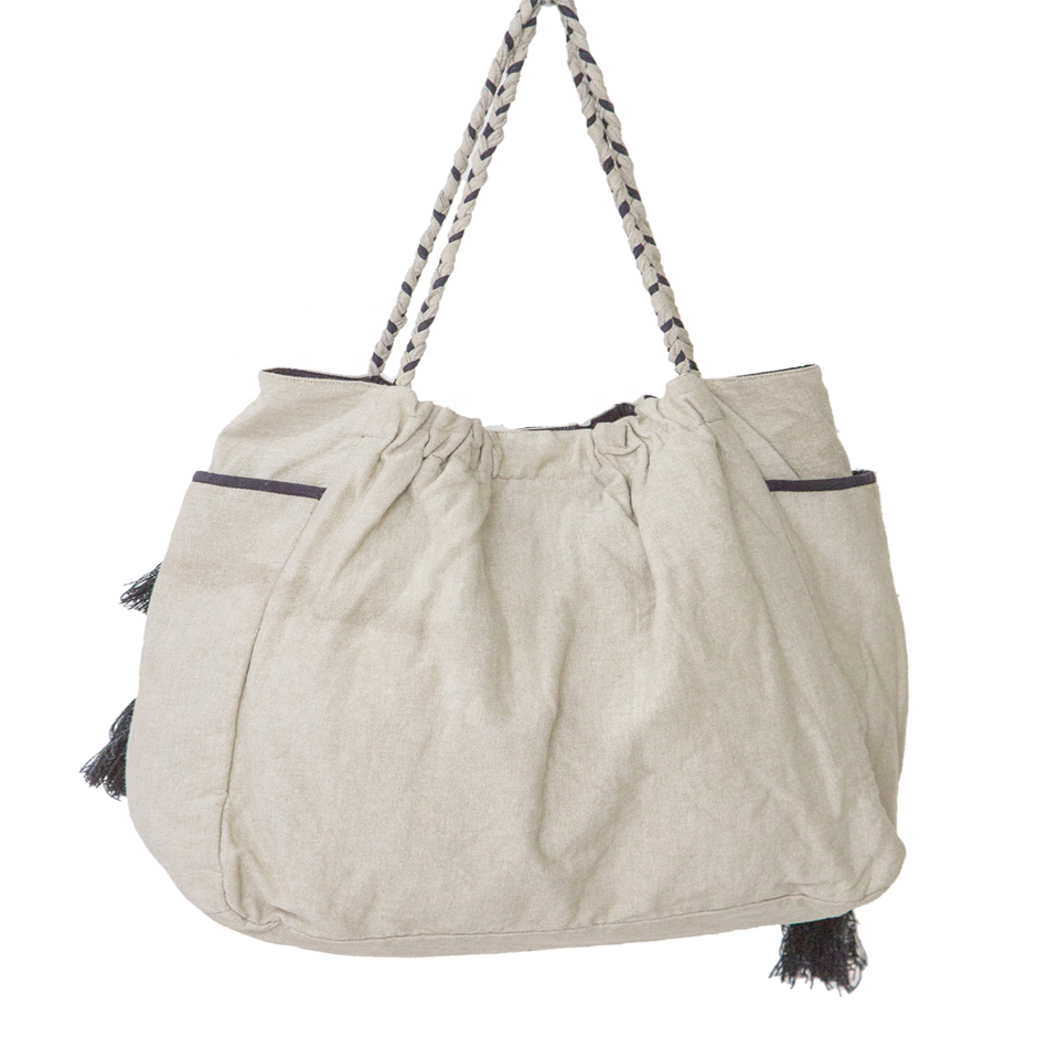 Casual Eco-Friendly Cotton Canvas Tote Handbag Dual Self-Handle Azo-Free Character Pattern Zipper Closure Lady Shoulder Carry