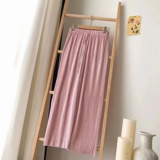 Casual Elastic High Waist Loose Long Pants Pleated Pant Trousers Summer Wide Leg Pants for Women