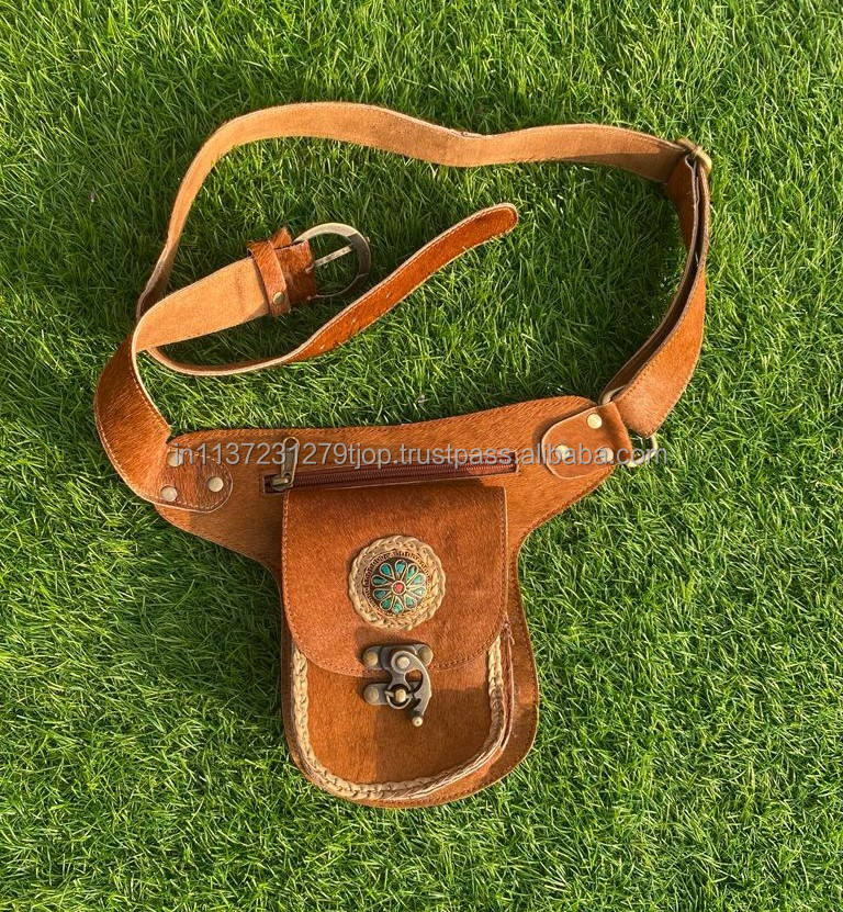 Western Unisex Cowhide Fur Leather Unique Hip Pocket Belts