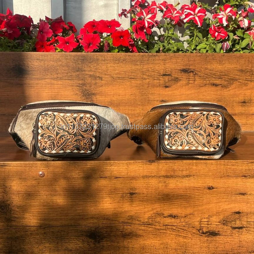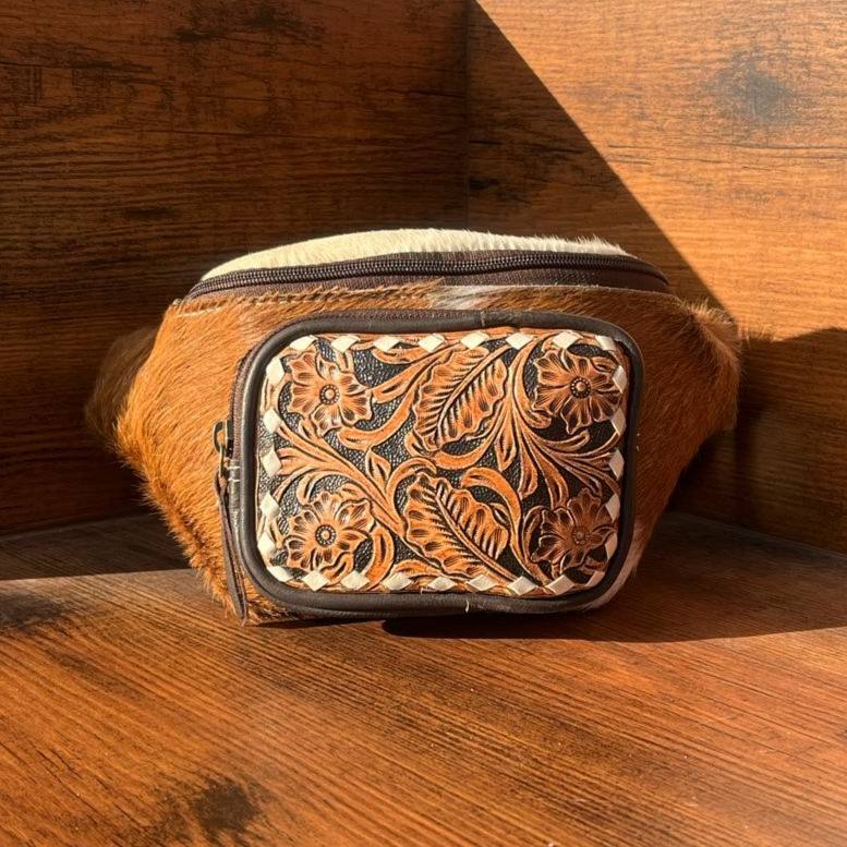 Western Unisex Tooled Fur Leather Unique Chest Belt