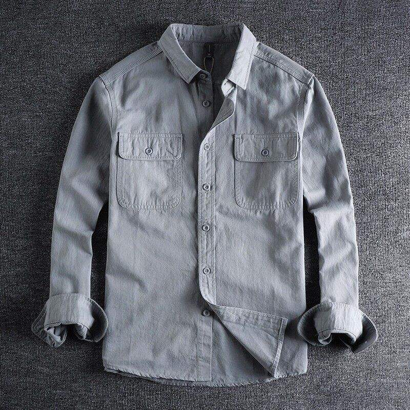 Men's Classic Long Sleeve Poplin Shirt 100% Cotton Casual Single Breasted Closure Easy-Care Fabric Size 6XL