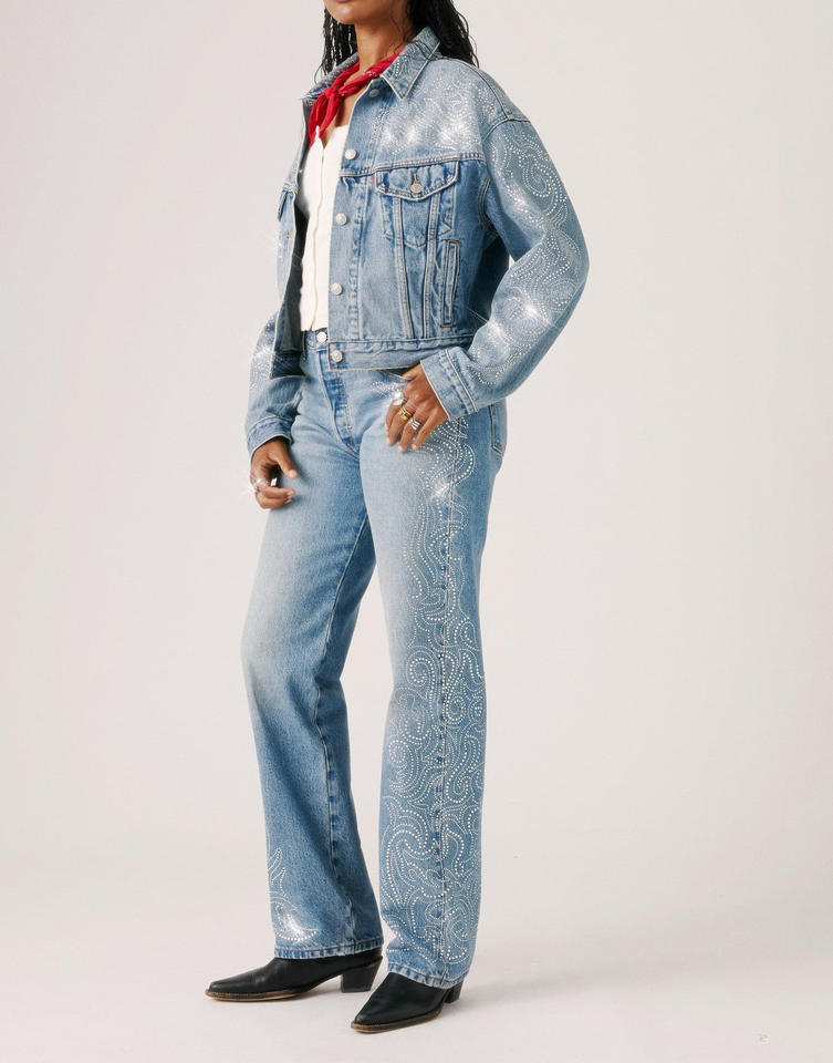 Casual Fashion Regular Length Denim Women's Bomber Jacket with Stripe and Embroidery Windproof Waterproof Light Blue