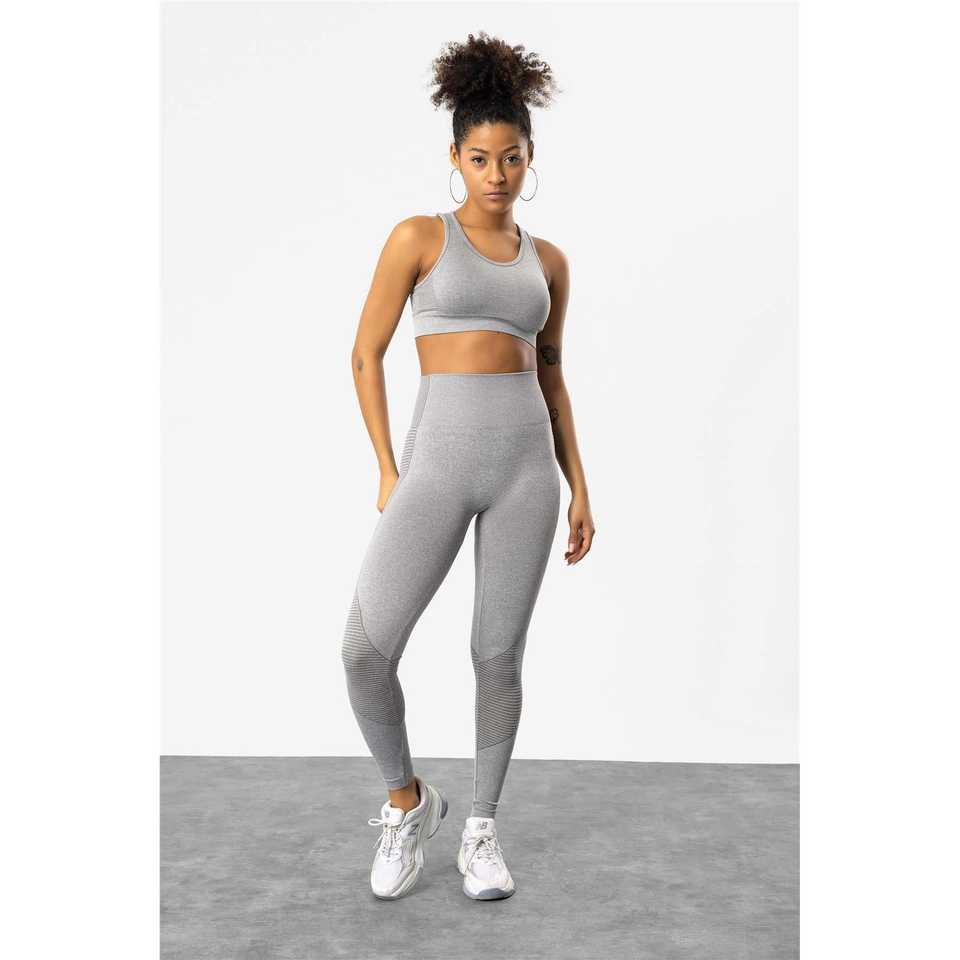 Casual Grey High Waist Rib Detailed Seamless Sports Tights