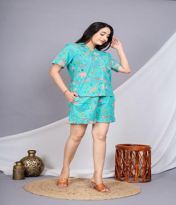 Casual Homewear Pajama Set in Soft Cotton Fabric, Stylish Printed Short Sleeve Top and Matching Shorts for Daily Lounge Wear