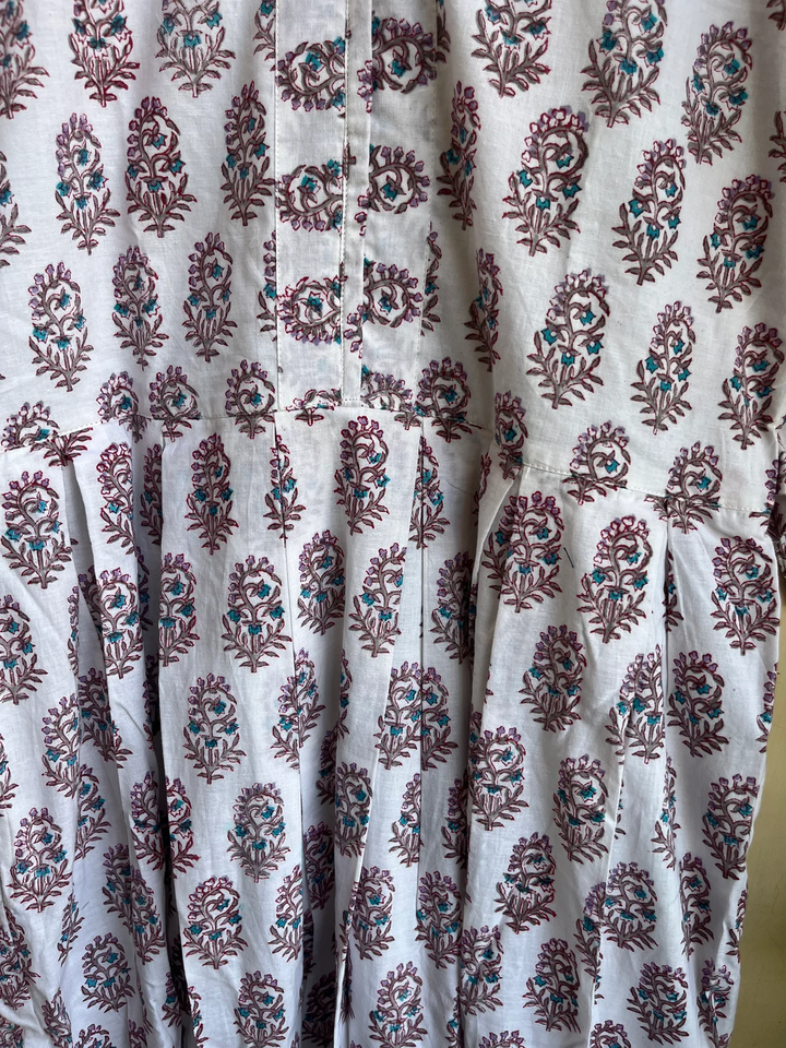 Casual Indian Cotton Dress Hand Block Printed Maxi Tunics with Floral Embroidered Decals Handcrafted Long Gown Floral Embroidery