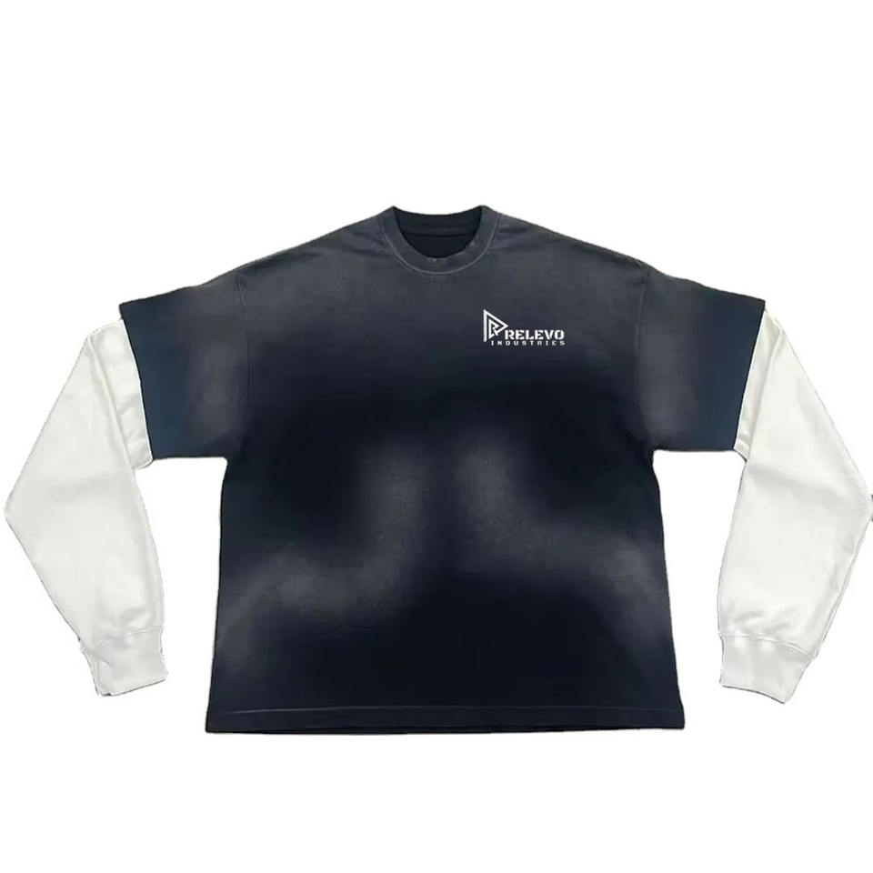 Casual Men Boxy T Shirt 300gsm Cotton Washed Tshirt Streetwear Vintage Acid Wash Double Layer Long Sleeve T-Shirt