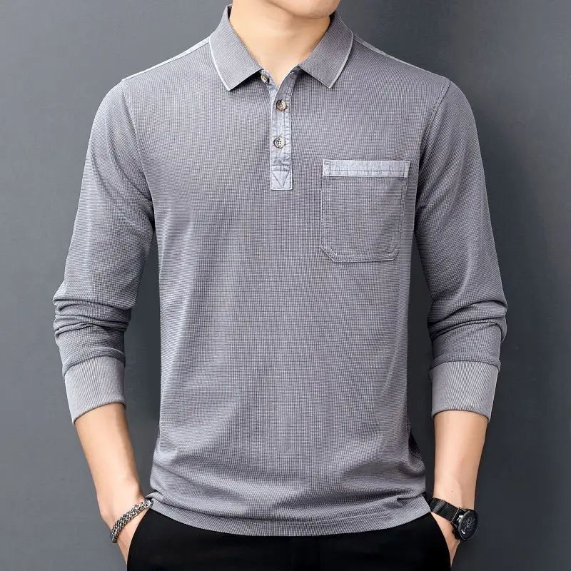Casual Men Polo Shirts Spring Autumn New Solid Lapel Button Pocket Streetwear Fashion Office Social Long Sleeve Tops