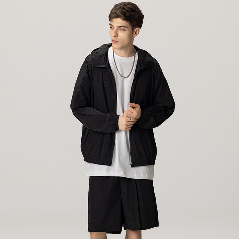 Casual Men's Summer Breathable Spandex/Cotton Outdoor Lightweight Jacket & Shorts Sportswear Tracksuit Set Windbreaker Shorts