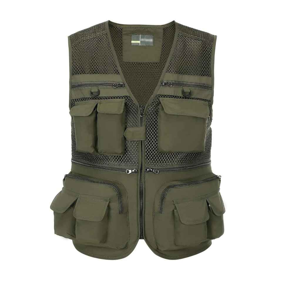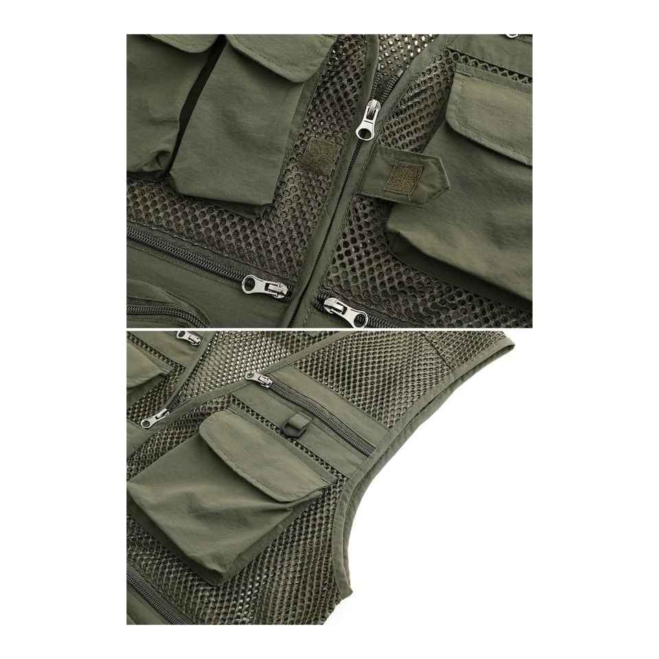 Casual Mens Cargo Vest with Zipper Closure Trendy Multi-Pocket Layered Short Breathable for Outdoor Summer Use