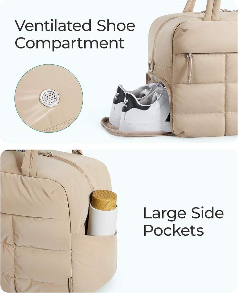 Casual Modern Durable Water-Resistant Travel Duffel Bag Puffer Weekender Gym Tote Shoe Compartment Nylon Zipper Outdoor