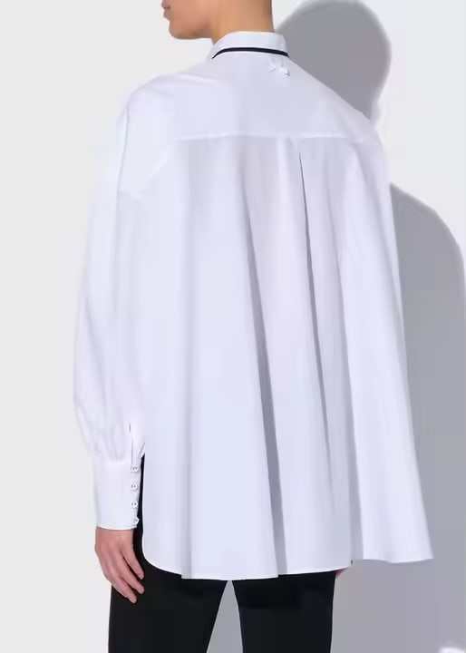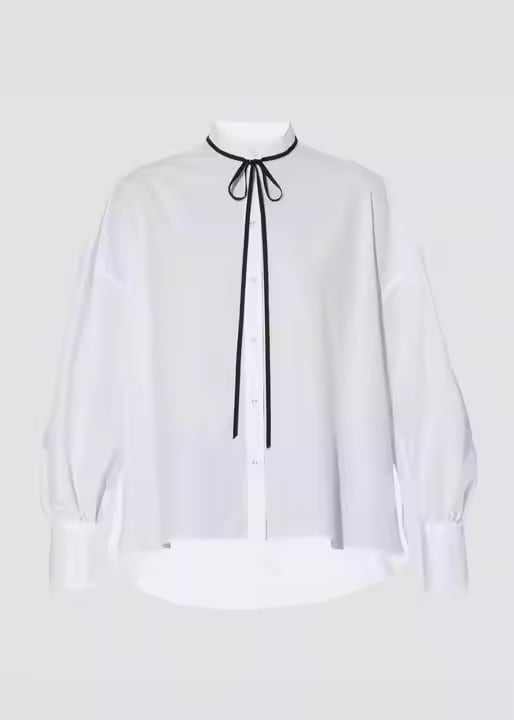 Casual Oem Custom Mandarin Collar Lace up Button Front Long Sleeves Plain Cotton Shirt Blouse for Women