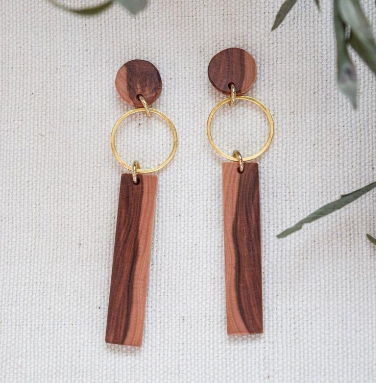 Boho Eco-Friendly Rustic Brown Wood Earrings with Gold Hooks Casual Outfit Accessory for Women Inspired by Love Angel Styles