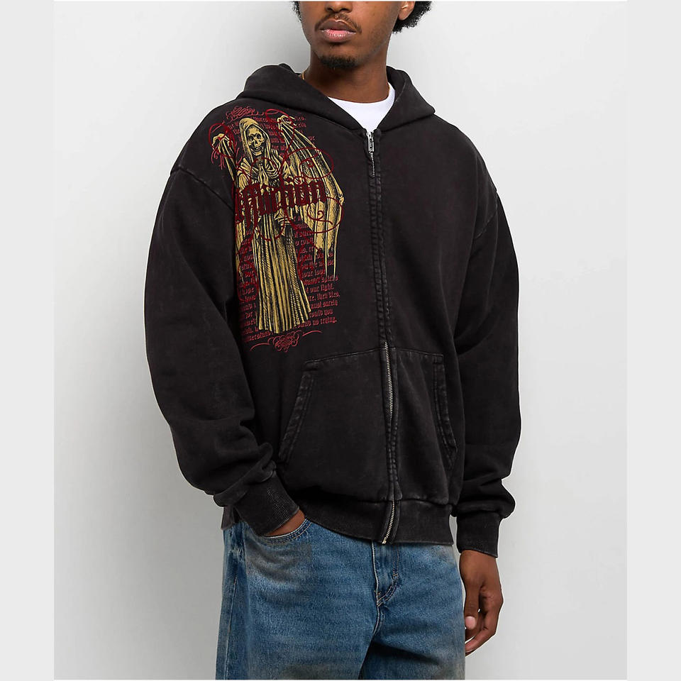 Casual Oversized Zipper Hoodie Streetwear Custom Logo Sweatshirt Fashion Unisex Heavyweight Full Zip Hooded Jacket