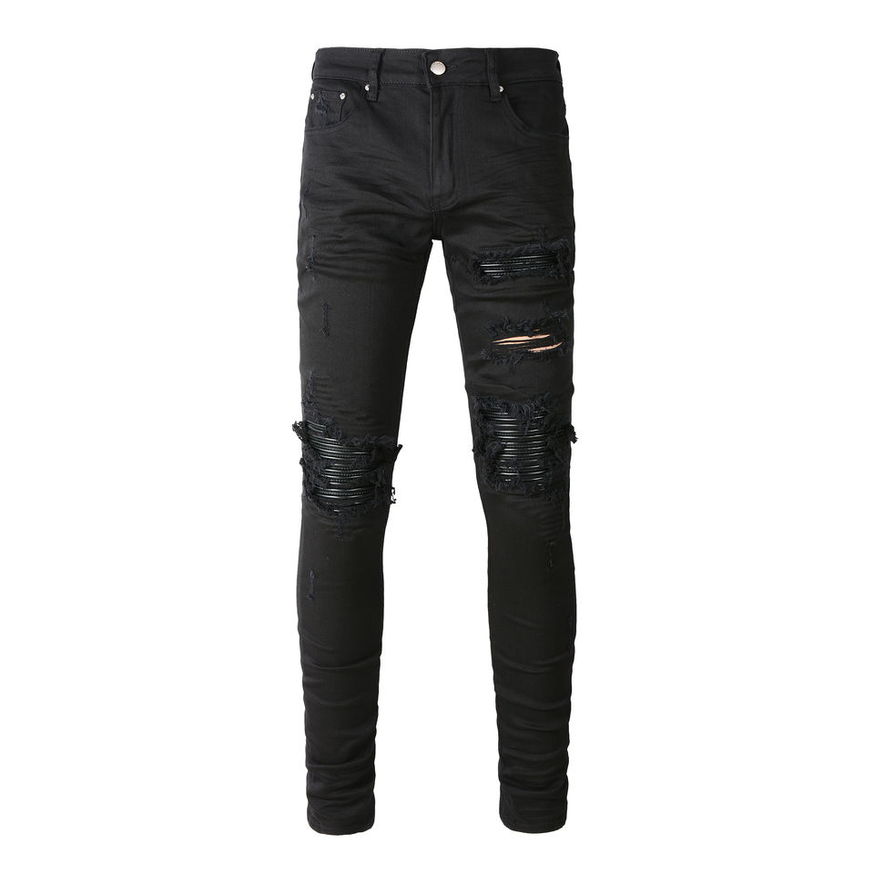 Casual Pants Comfortable Cotton Denim Jeans Custom Logo New Design Washed Sport Men Slim Print Pattern Knitted Waxed finish