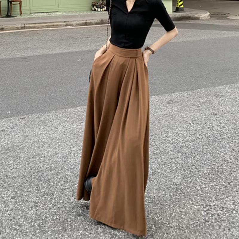 Casual Pants Women High Elastic Waist Summer Breathable New Fashion Brown Character Loose Straight Trouser