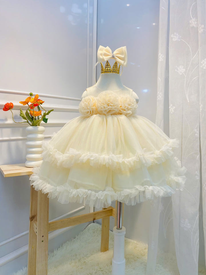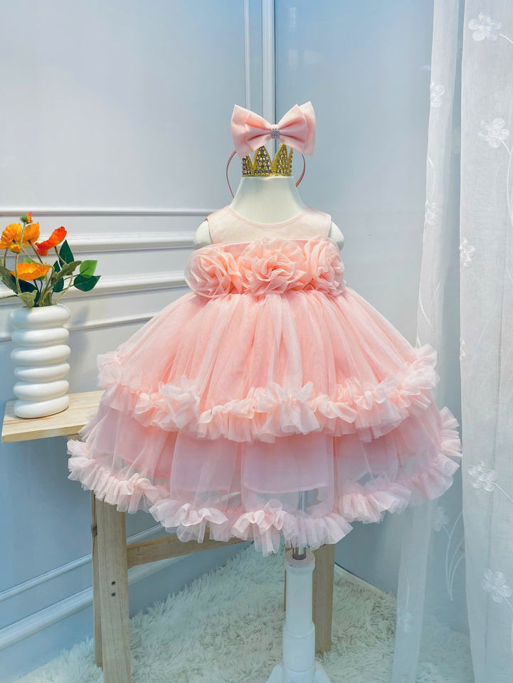 Casual Party Dress Gown for Children ODM/OEM Come in Many Color Options 3D Flower Decor Made From Many Layers of Soft Mesh