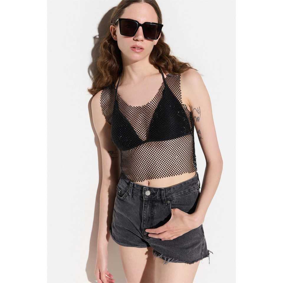 Casual Short Sleeve Blouse for Ladies Embroidered Logo Ruffled Collar 3D Pattern Sequined Lace Decorations XL Size Knitted Loose