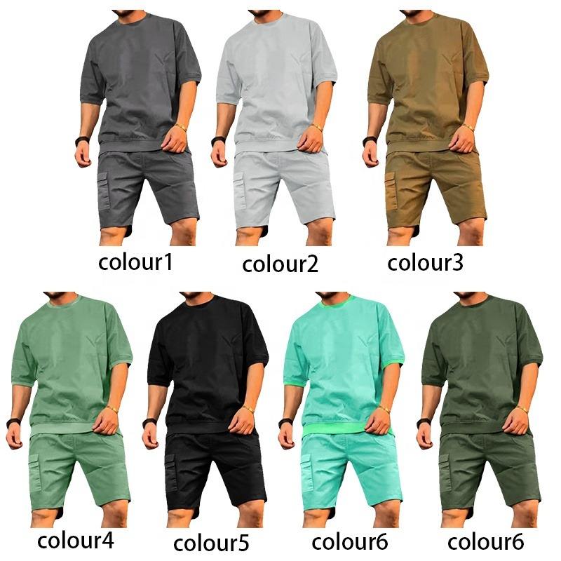 Casual Short Sleeve Shorts Two Piece Set Custom Logo Plain Shirt and Shorts Set for Men Blank Men's Tracksuit With Multi Bag