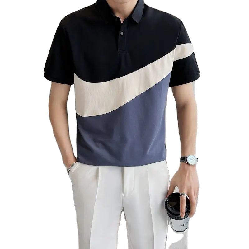 Casual Short Sleeve T-shirts Men's Clothing Contrasting Colors Summer Polo-Neck Fashion Button Vintage Basic Polo Shirts