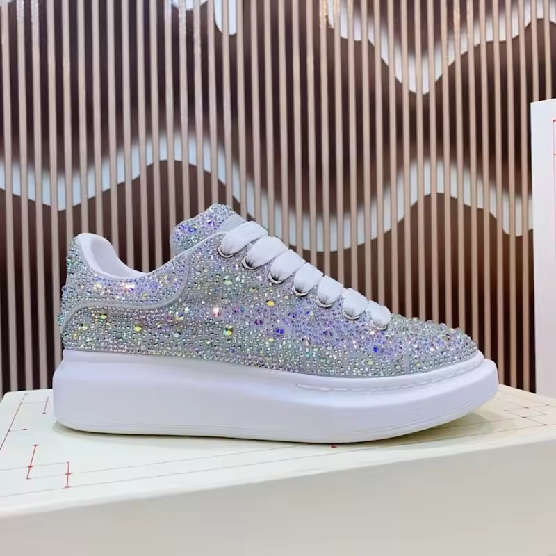 Casual Sports Shoes for Women & Men Platform Thick Sole Glitter Gradient Sneakers with Rhinestones & Lace-Up Lightweight Lighted
