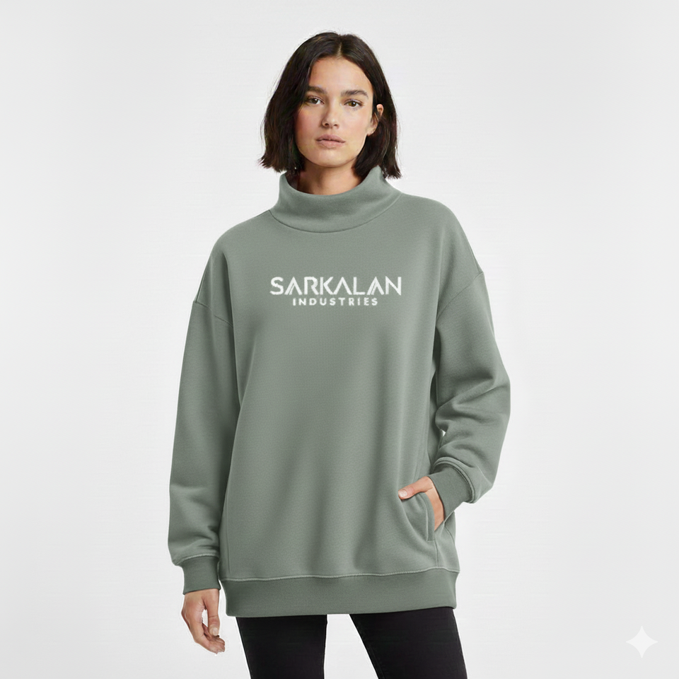 Casual Streetwear Women Oversized Long Knitted Printed Mockneck Sweatshirt Loose Winter Pullover Top Breathable for Modern