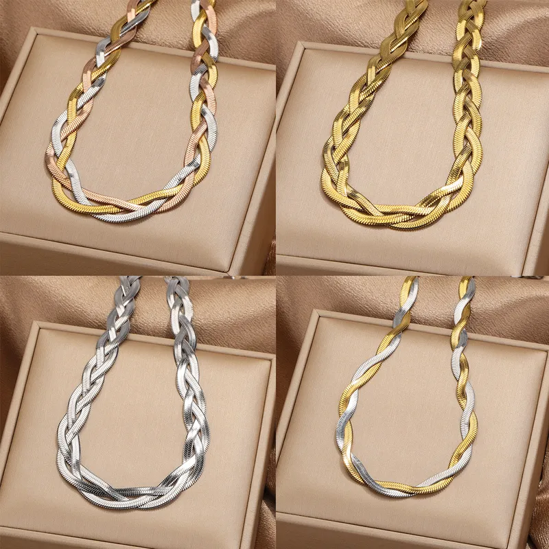 Casual Style Bracelet and Necklace Jewelry Set 304 Stainless Steel with Geometric and Braid Design Plated Surface for Wholesale