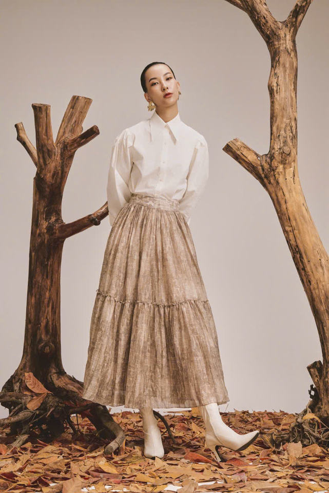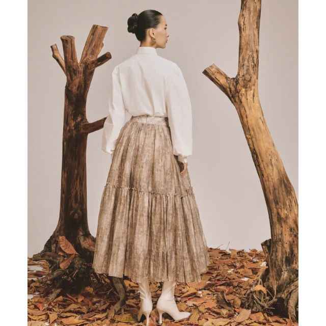 Vietnam-Made Ladies' Casual Elegant Charming Dusk Print Silk Chiffon Fall Clothing ODM Services Women's Dropped Waistline Skirt