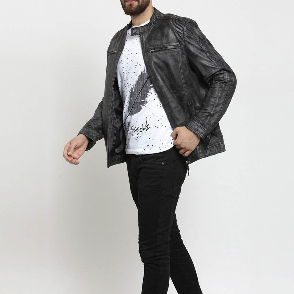 Casual Style Inside Tow Pockets Biker Leather Jacket Stand Collar Unique Design Full Sleeve Trendy Outfit Leather Jacket