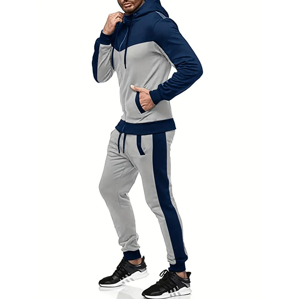 Casual Style Mens Tracksuit Set Two Piece Outfit with Soft Zipper Jacket and Slim Fit Joggers for Everyday Lounge Wear
