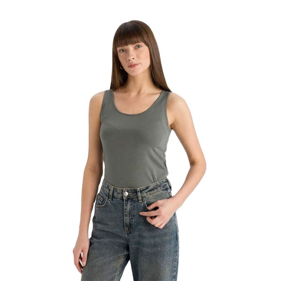 Casual Summer Wear Women Dark Grey Tank Top Cotton Spandex Slim Fit Sleeveless Scoop Neck Ladies Vest Available in all Colors