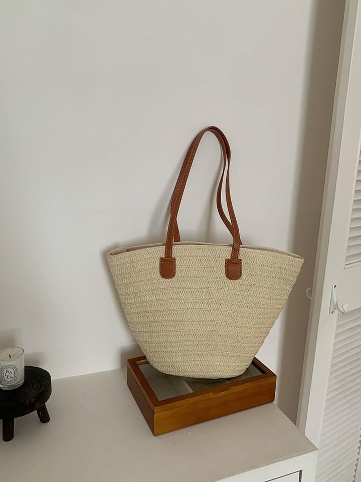 Casual Tote Handbag for Women Large Capacity New Holiday Beach Bag Braided Bucket Basket Commute Tote Zippered Closure Handbag