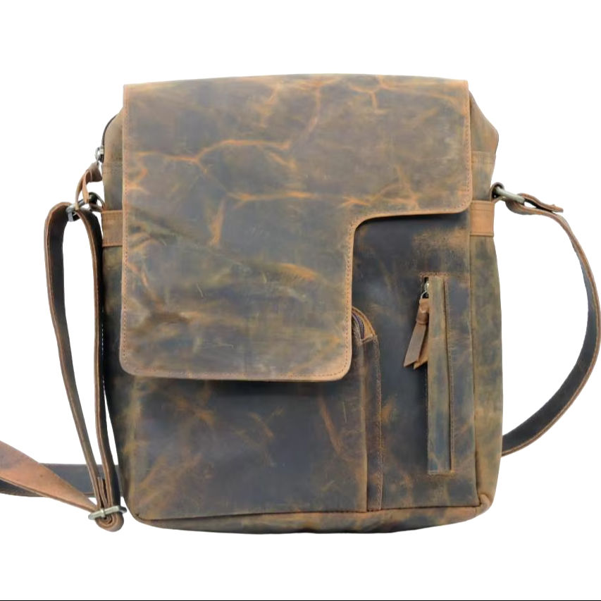 Casual Vintage PU Leather Shoulder Bag Small Messenger Bag for Men Lifestyle Crossbody Bag for Travel Work Business Handmade