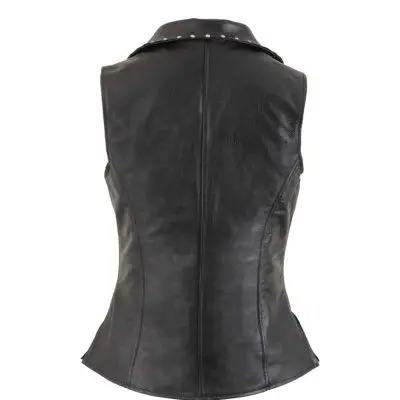 Casual Wear Made in Pakistan Custom Leather Biker Women Vests Black Hunting Vest Genuine Leather Outer Wear Vest for Ladies