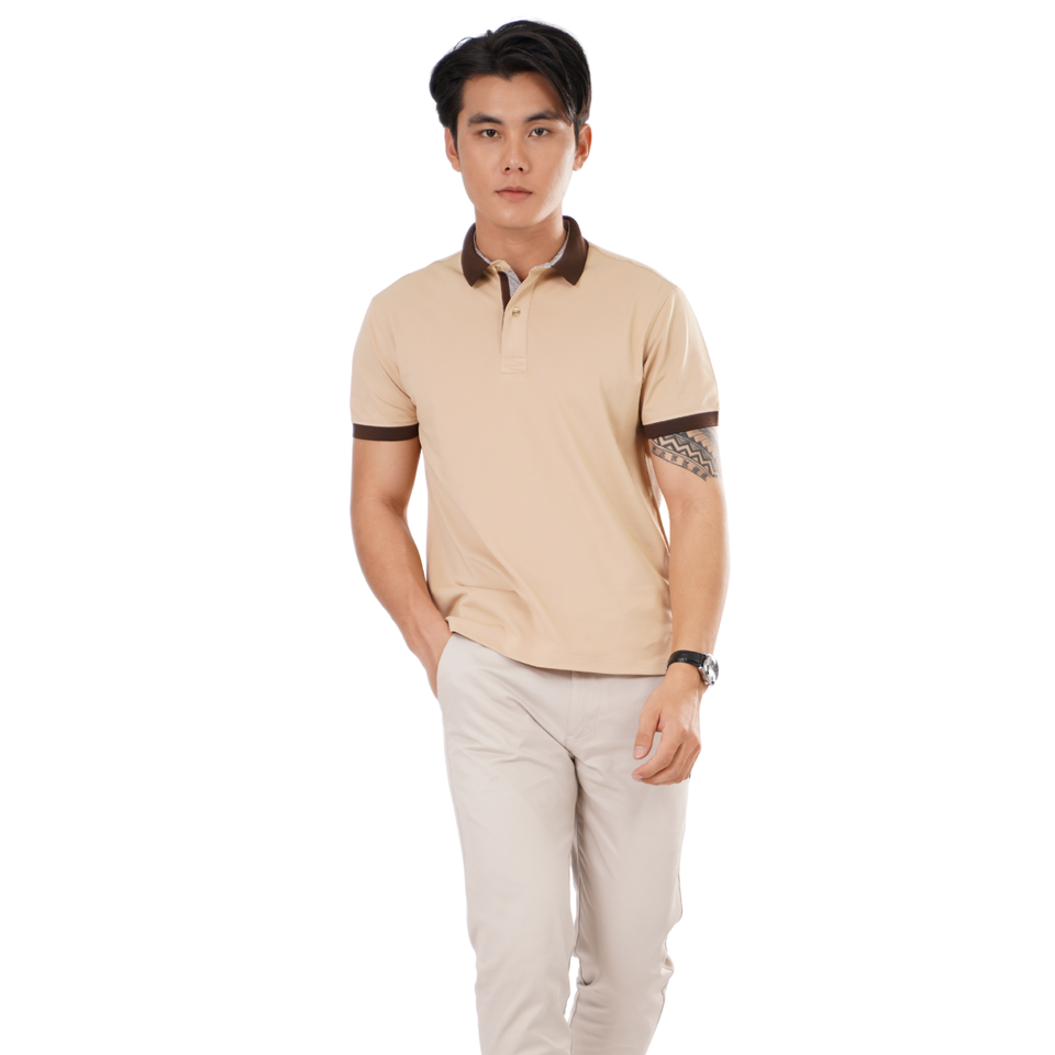 Product Name:Polo Shirt with Contrast Woven Inner Collar