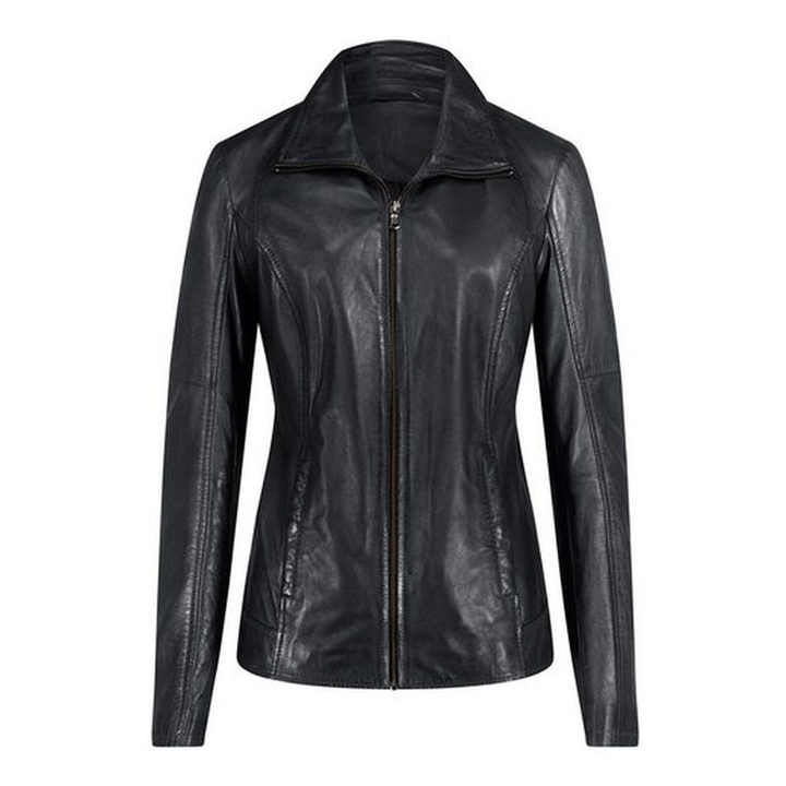Stylish Casual Women's Genuine Sheep Skin Leather Varsity Jacket Black Zip-Up Softshell with Cotton Padding Woven Weaving Method