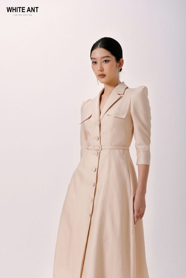 Casual Women's Dresses With Good-Quality Fabric New Design Belt Rafael Notcher Midi Length Whiteant Vietnam Wholesaler