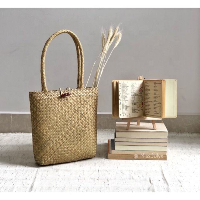 Casual Women's Summer Autumn Tote Bag Hand Braided Seagrass and Straw Zipper Closure for Shopping Natural Look