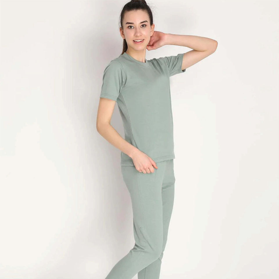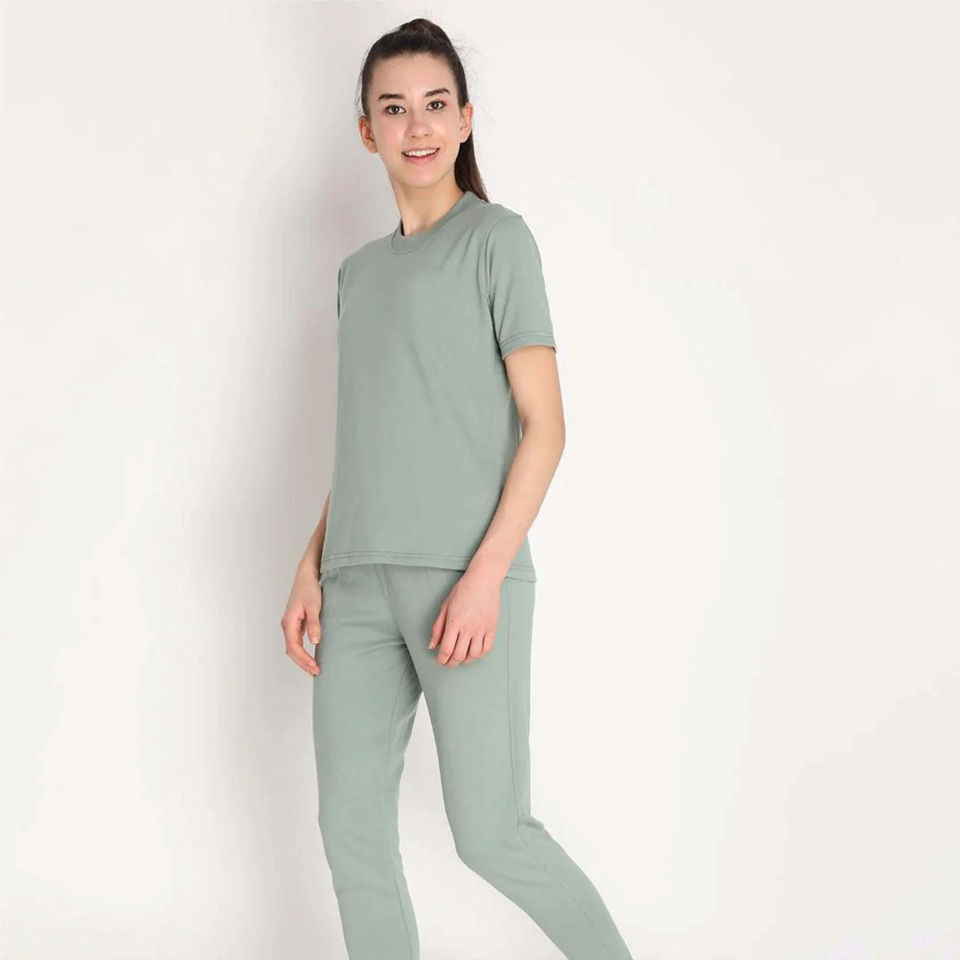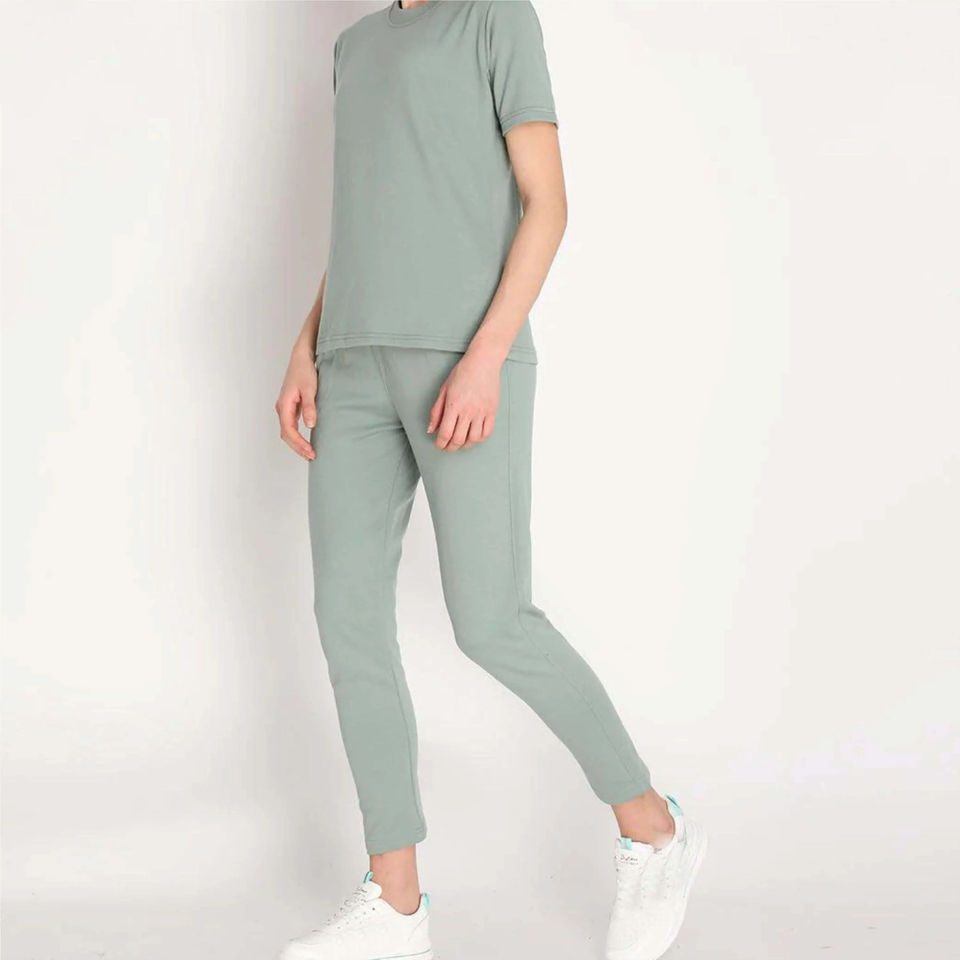 Casual Womens Summer Clothing Sets Regular High Quality Quick Dry Cotton Short Sleeve T Shirt Womens Color Shirt Trouser Sets