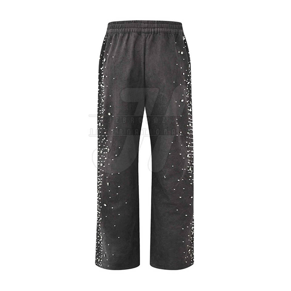 Casual Working Low MOQ Men Cotton Made Rhinestone Trousers High Waist Straight Outdoor Wear Men Rhinestone Trouser