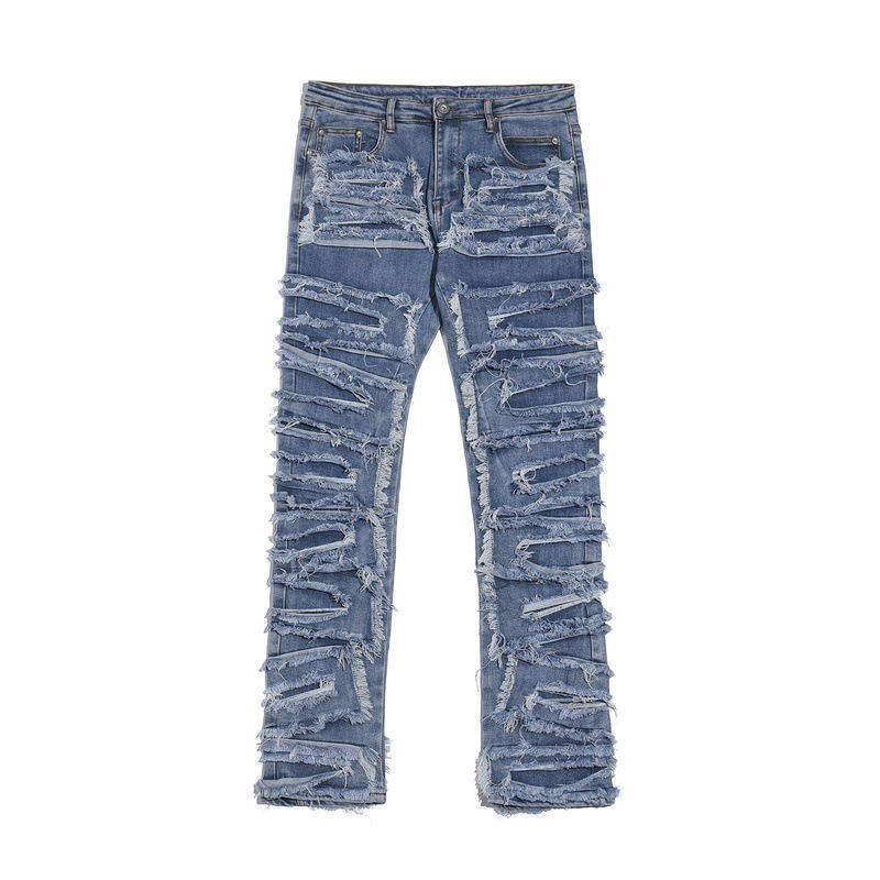 Casual fashion men's pantswashed slim mid waist denim trousers distressed skinny jeans versatile straight leg pants