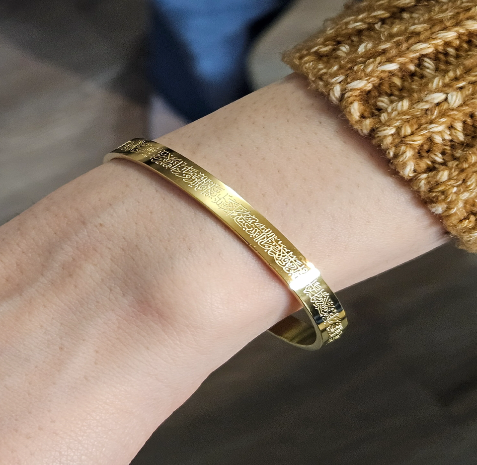 Casual Golden Unisex Brass Stainless Steel Adjustable With Engraved Ayatul Kursi Cuff Bracelet for Men and Women at Cheap Prices